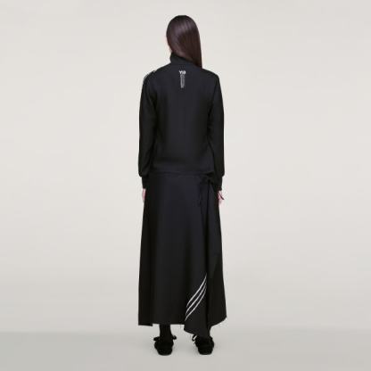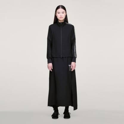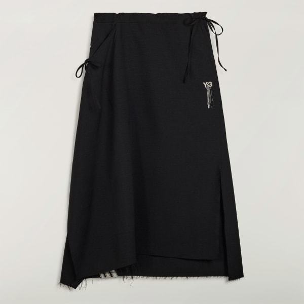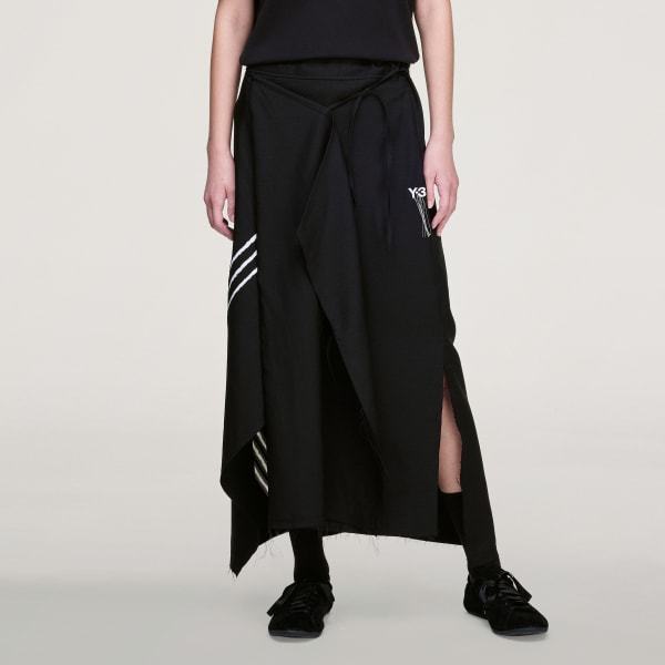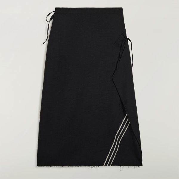 A Y-3 skirt with raw cut 3-Stripes and versatile styling options.